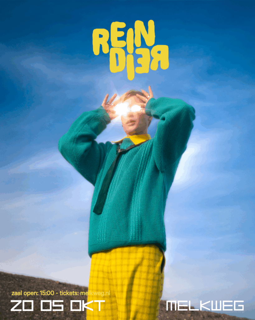 “Op zondag 5 oktober geef ik met mijn band REINDIER een bijzonder theatraal concert in de Melkweg, Amsterdam. Een middag vol alternatieve Nederlandstalige indiepop: soms vrolijk in een Doe Maar-jasje, soms klein en melancholisch als Nick Drake, en net zo eclectisch als Sufjan Stevens.