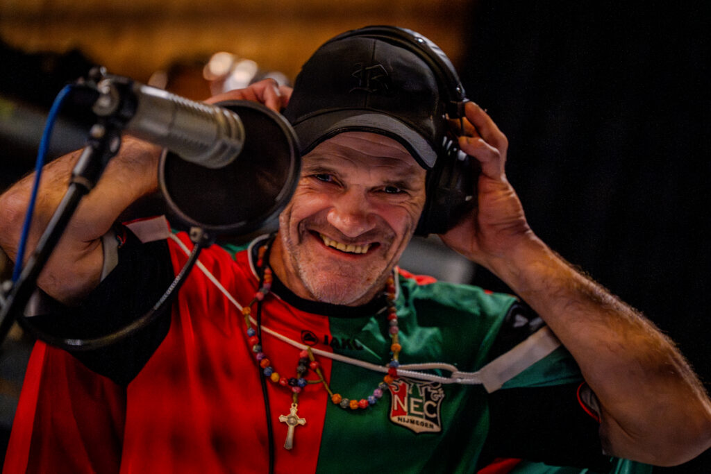 We boekten op met spoed een fijne studio in de Basis (oud-Doornroosje) met studiotechnicus en zorgden ervoor dat zijn studiotijd werd vastgelegd op professioneel beeld. Dat er in de studio ook nog eens een mega NEC vlag hing, bracht wellicht nog een grotere glimlach op Richard’s gezicht.
